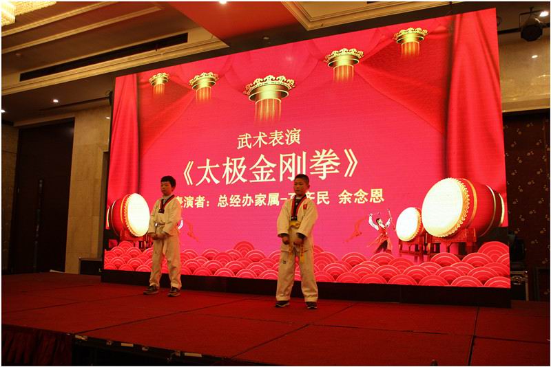 年會(huì)中,員工及家屬們積極踴躍展示才藝,節(jié)目繽紛多彩,令人眼花繚亂,應(yīng)接不暇,既有萌萌的兒童舞,又有百靈鳥(niǎo)般的優(yōu)美歌聲,還有少林小武者的中華武術(shù)表演,更有大師級(jí)的現(xiàn)場(chǎng)潑墨,大家紛紛上臺(tái),一展才華·······精彩的節(jié)目獲得了觀眾的陣陣掌聲和喝彩。