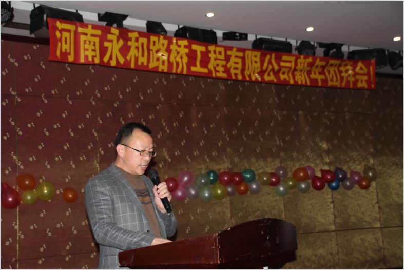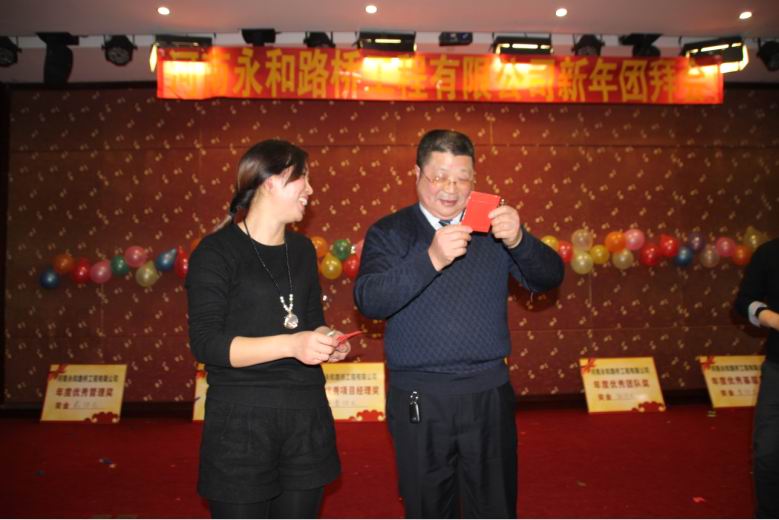 2016年2月4日晚,農(nóng)歷臘月26日晚,河南永和路橋工程有限公司在信陽市五星 級酒店中樂百花酒店隆重的舉行了2016年新春團(tuán)拜會,本次團(tuán)拜會由公司全體員工及家屬、公司的合作伙伴、朋友等共同出席,大家歡聚一堂、把酒言歡、其樂融融。公司董事長孔總發(fā)表新年賀詞并代表公司對年度優(yōu) 秀個(gè)人及團(tuán)隊(duì)進(jìn)行了表彰。公司還為到場的每位小寶寶送上新年祝福和紅包,并準(zhǔn)備了抽獎(jiǎng)環(huán)節(jié)。大家歡歌笑語,一直將熱鬧、愉快的氛圍維持到午夜。